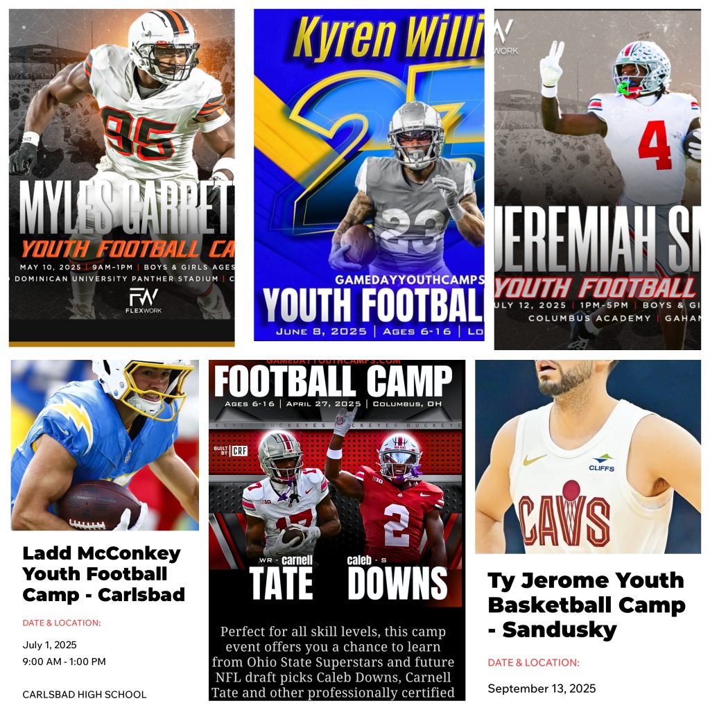FlexWork Sports Management partnership has provided 5 ICSA Scholarships for NFL Camps: 2021 QB Justin Fields, 2022 QB C.J. Stroud, 2024 WR Garrett Wilson & WR Jaxson Smith-Njigba; May 2025 All-Pro DE Myles Garrett NFL and July 2025 L.A. Chargers WR Ladd McConkey & OSU WR Jeremiah Smith; September 2025 NBA G Ty Jerome Youth Camp participation.